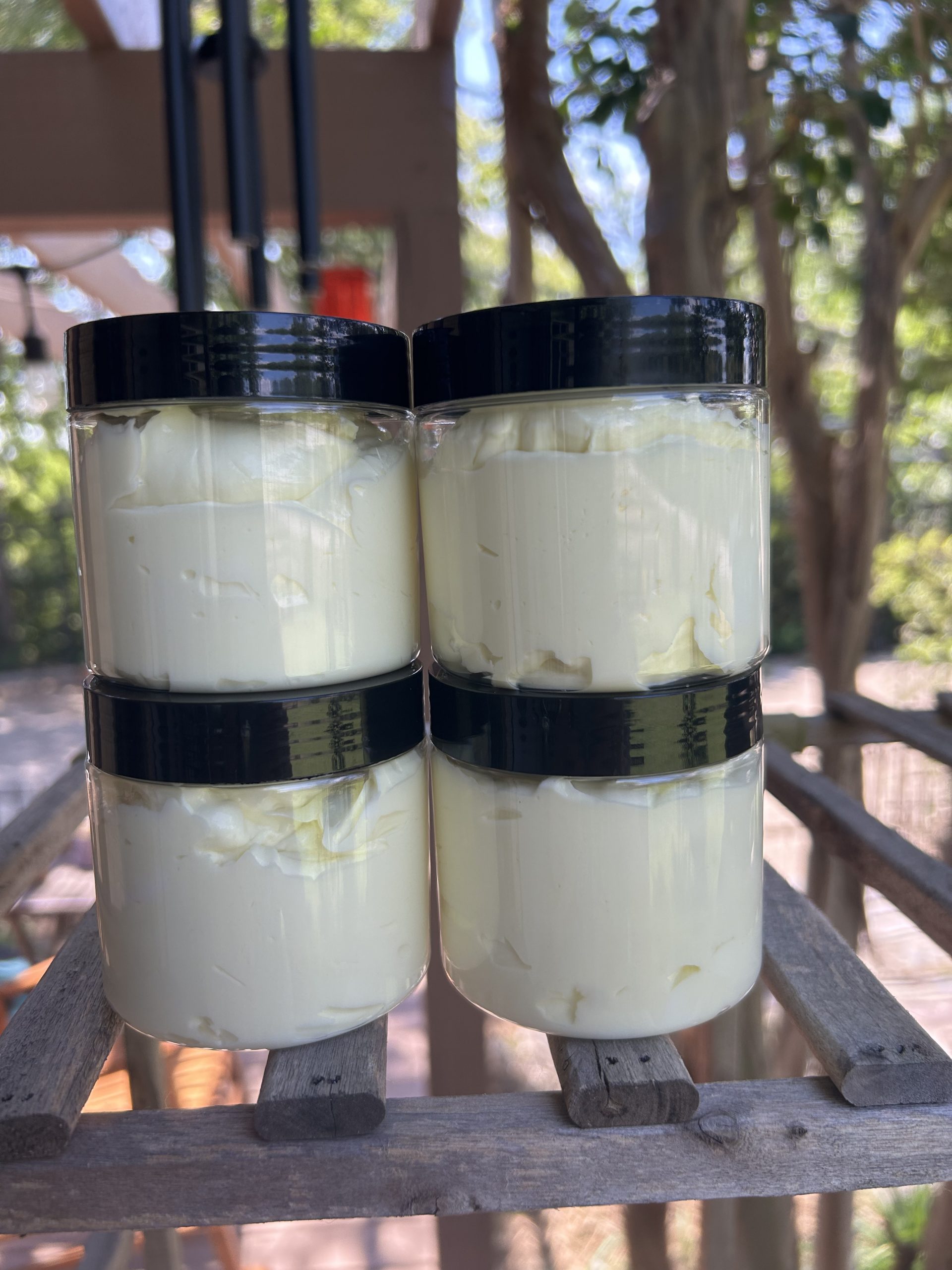 This recipe is made with all natural ingredients, including raw shea butter, champagne extract and a blend of luxurious oils. Â If you have extra dry or mature skin, sometimes lotions aren’t enough. Â That’s where this whipped butter comes in! Â It’s intensely moisturizing and gentle and just happens to have a great scent too.